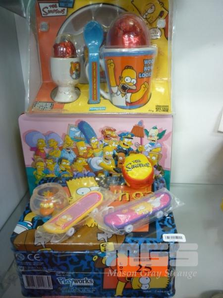 ASSORTED SIMPSON COLLECTABLES, LUNCH BOXES, EASTER EGG, TOY SKATEBOARDS, HAPPY SACK & FISH