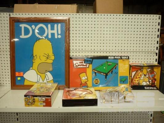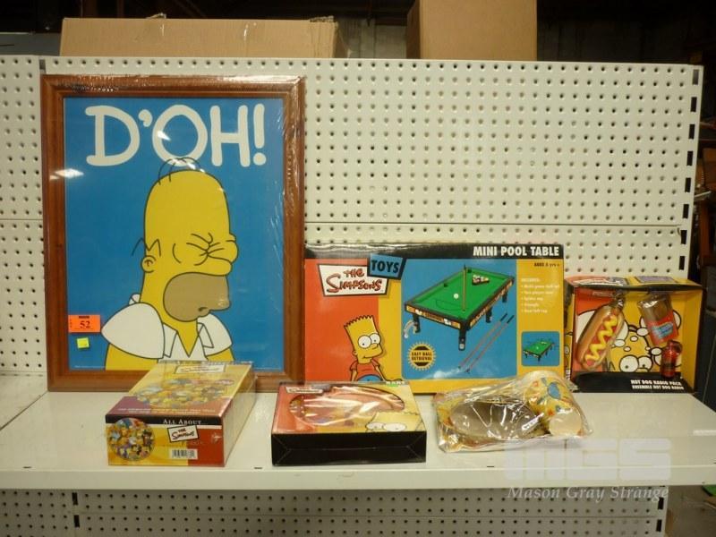 SIMPSONS COLLECTABLES, FRAMED PRINT, JIGSAW, POOL TABLE, CLOCK, HOT DOG RADIO, PARTY SET