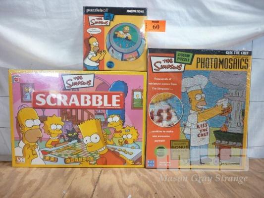 SIMPSONS BOARD GAMES, SCRABBLE, PHOTO MOSAIC, MOTIVATIONS PUZZLE BALL (UN-OPENED)