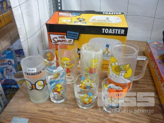 SIMPSONS COLLECTABLES, TOASTER, ASSORTED GLASSWARE