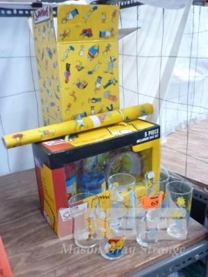 SIMPSONS MELAMINE LUNCH SET, ASSORTED GLASSWARE, BOOK COVERING & PROMO BOX