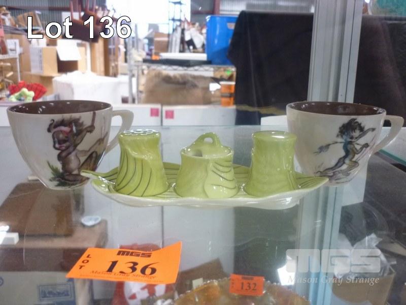 2 X BROWNIE DOWNING CUPS & CARLTON WARE CRUET SET