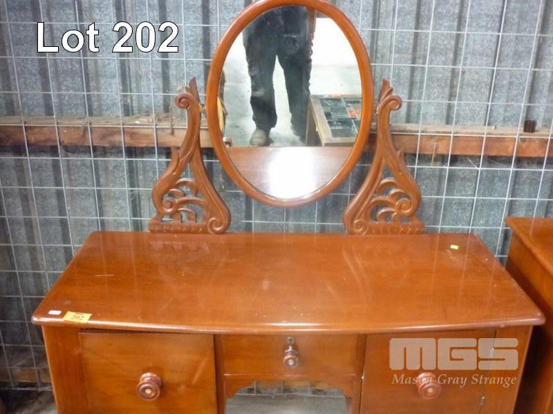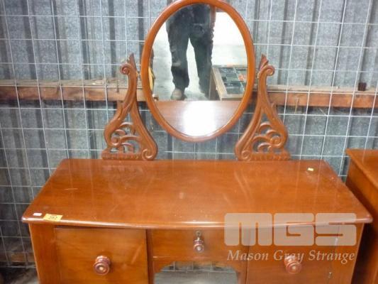 POLISHED TIMBER DRESSER, OVAL MIRROR, 3 DRAWERS, CABRIOLE LEGS