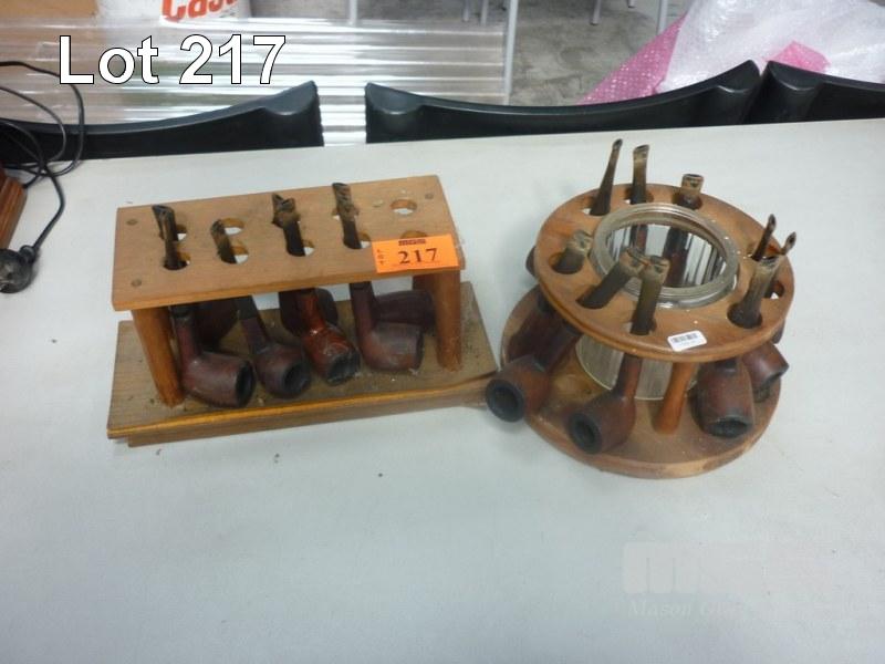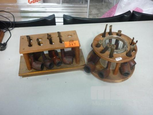 COLLECTION TIMBER TOBACCO PIPES, IN STANDS