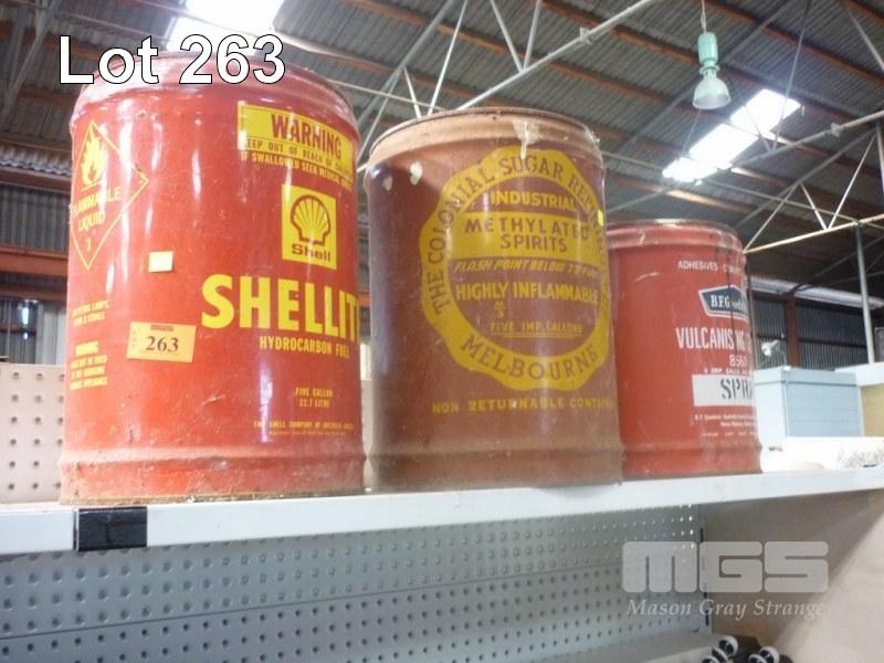 3 X TINS, 1 X SHELLITE 5 GALLON, 1 X METHYLATED SPIRITS 5 GALLON, 1 X VULCANIZING CEMENT 4 GALLON