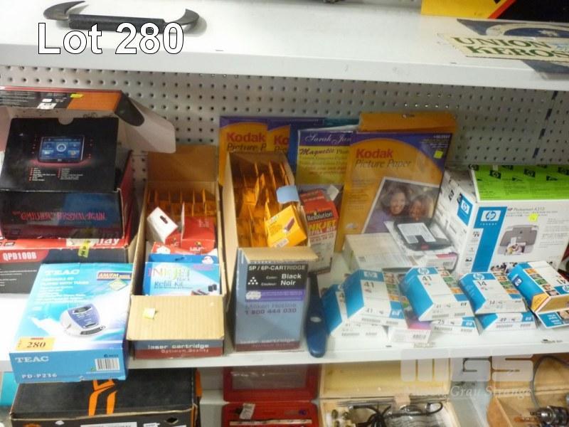 HP PHOTOSMART A310 IPAD TRAVEL COMPANION, DVD PLAYER, ASSORTED INK CARTRIDGES ETC