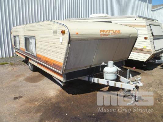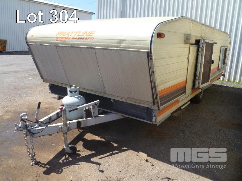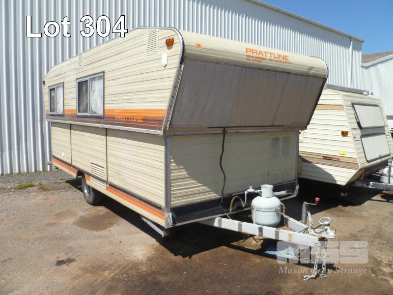 1986 PRATTLINE LOWTOW 18 FOOT CARAVAN REG: TKK590 (SA) (EXPIRED) VIN: 6121226 1 DOORS, 6 SEAT, SPARE WHEEL, GAS/12VOLT FRIDGE, LPG STOVE , HYDRAULIC ROOF LIFT, CLOCK RADIO, GAS CYLINDER , ISLAND BENCH. (WITH PAPERS, WITH OWNER'S MANUAL, NO SERVICE BOOKS) CONDITION: PASSENGER SIDE - WATER DAMAGE TO INSIDE UPPER LINING DRIVERS SIDE - SMALL DENTS AND SCRATCHES HYDRAULIC LIFT PUMP - MINOR LEAK WHEN PUMPING