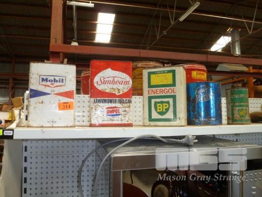 5 x PETRONALIA TINS, MOBIL, SUNBEAM, BP & DIGGERS