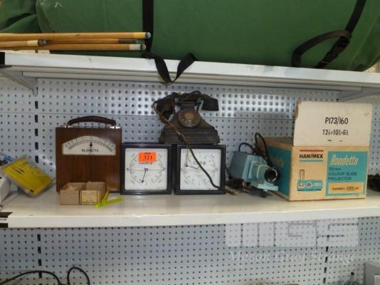 BAKELITE DIAL TELEPHONE, 3 x VINTAGE GAUGES, SLIDE PROJECTOR, HANIMEX 35mm SLIDE PROJECTOR ETC