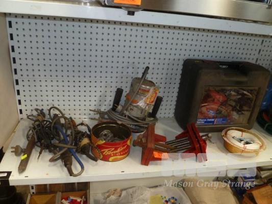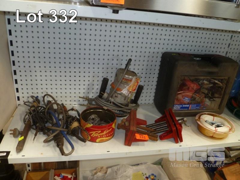 SOLDERING IRONS, TOWA HANDY ROUTER, ARLEC DISC SANDER, BENCH CLAMPS ETC