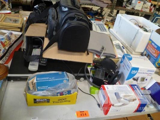 ASSORTED ELECTRICAL, PRINTER, BLOOD PRESSURE MONITOR, ULTRA SOUND MACHINE, CAMCORDER & PHONE