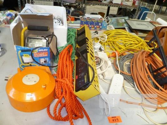 EXTENSION LEADS, POWERBOARDS, ROPE & ASSORTED LIGHTING