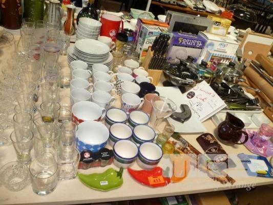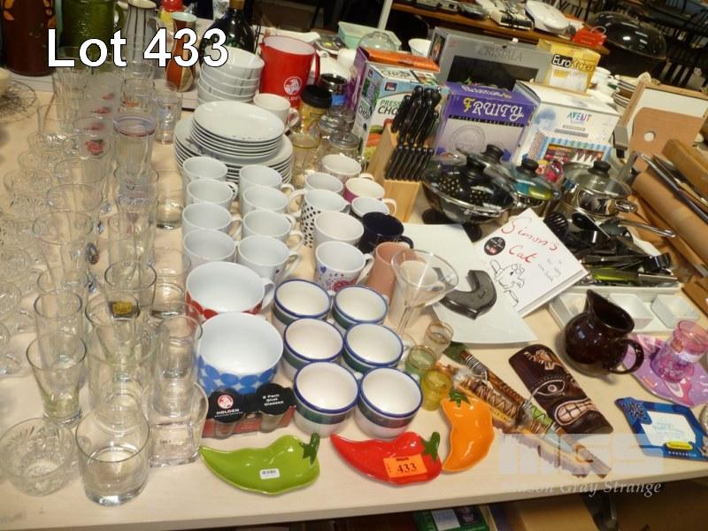 ASSORTED GLASSWARE, DINNERWARE, KITCHENWARE, ETC, 1 x TABLE