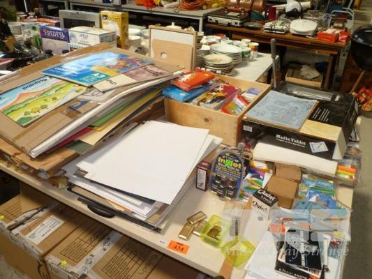 ASSORTED ART SUPPLIES, ART PAPER, OILS, PASTELS, ACRYLICS, MEDIA TABLET ETC (1 x TABLE)