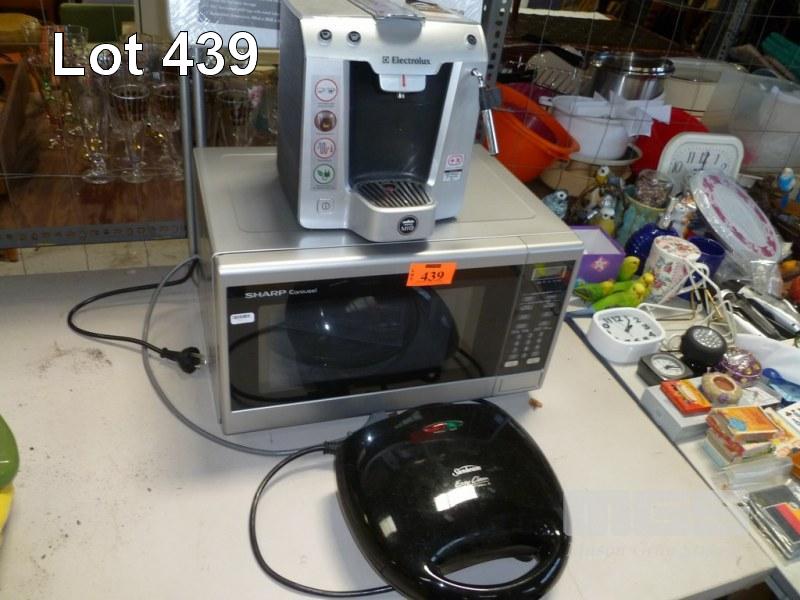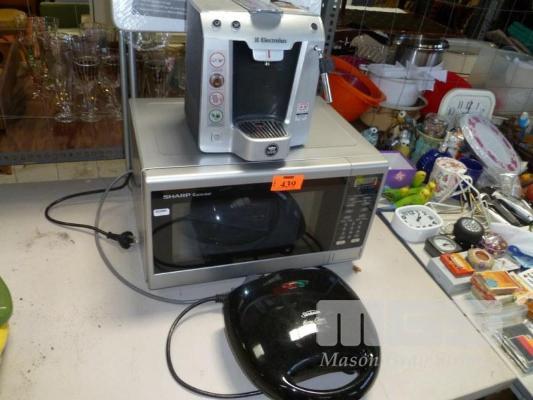 ELECTROLUX, LAVAZZA COFFEE POD MACHINE, SHARP MICROWAVE, SANDWICH GRILL & SNACK TABLE