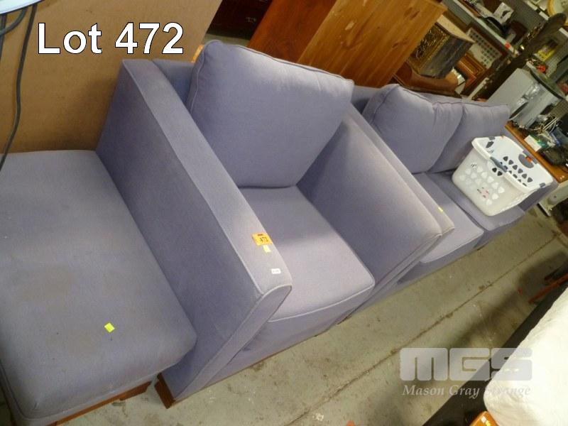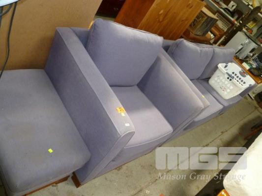 BLUE FABRIC 3 PIECE LOUNGE SUITE INCLUDING 3 SEATER LOUNGE, SINGLE SEATER & POUFFE