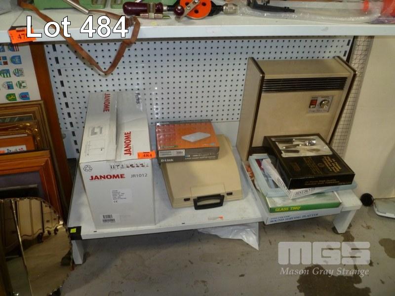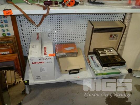 JANOME SEWING MACHINE, TYPEWRITER, HEATER, FLATWARE ETC