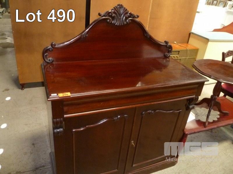 MAHOGANY CHIFFONIER, 2 DOOR, SINGLE DRAWER, DECORATIVE CARVED