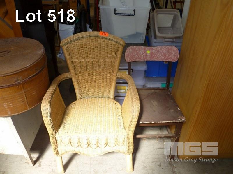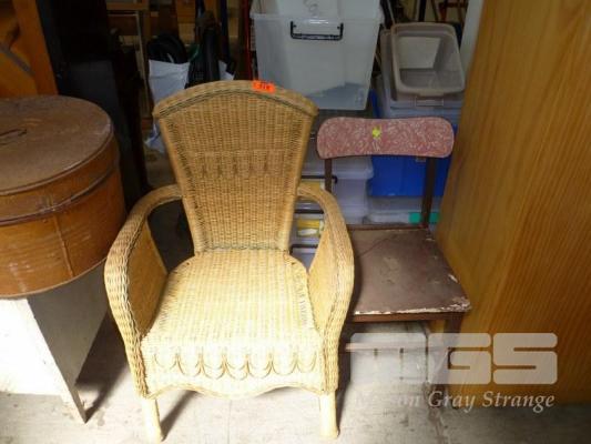 CANE ARMCHAIR & TIMBER DINING CHAIR