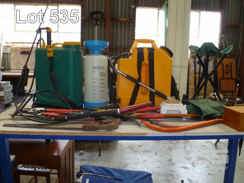 ASSORTED GARDENING, SPRAY PACKS & TOOLS