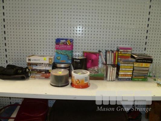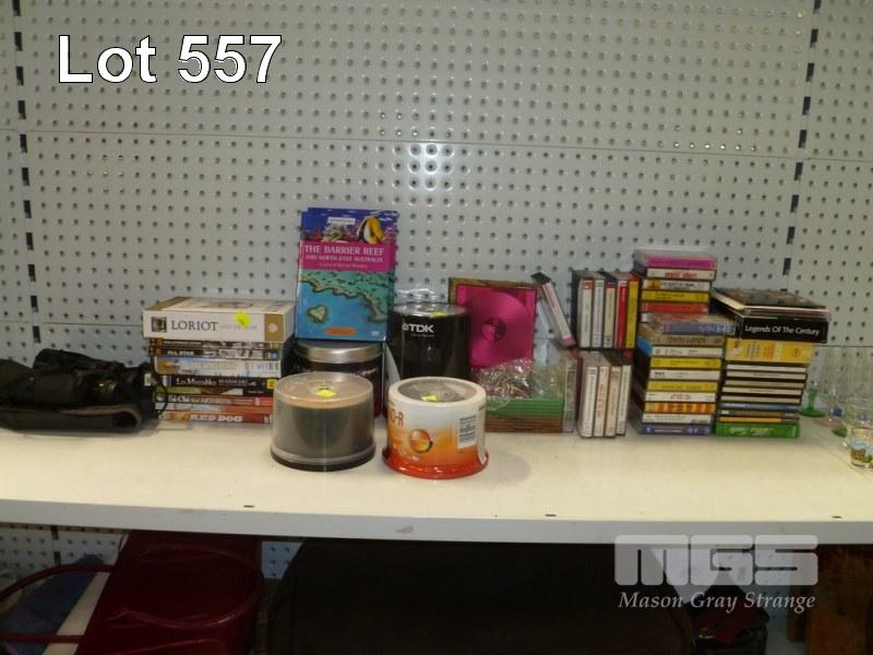 ASSORTED DVD'S, CASSETTES, BINOCULARS