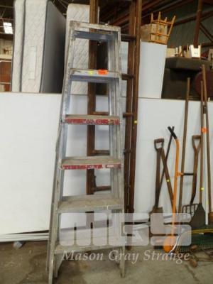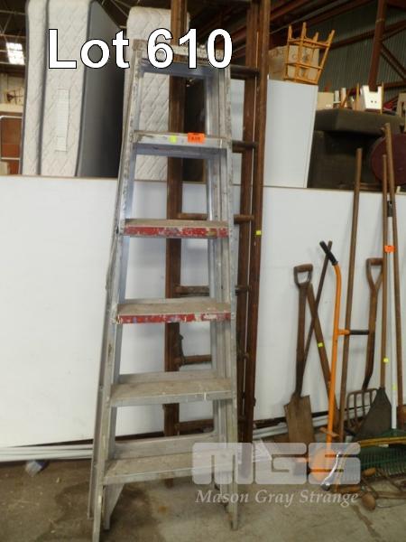 2 X ALUMINIUM STEP LADDERS & 1 X TIMBER EXTENSION LADDER