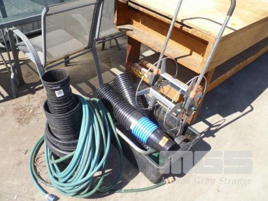 HOSE REEL, HOSE, GARDEN POTS & TUB