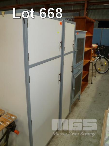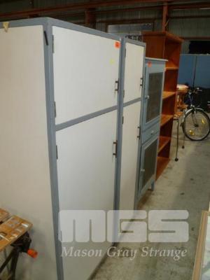 2 x METAL FRAME, TIMBER CABINETS, 2 DOOR