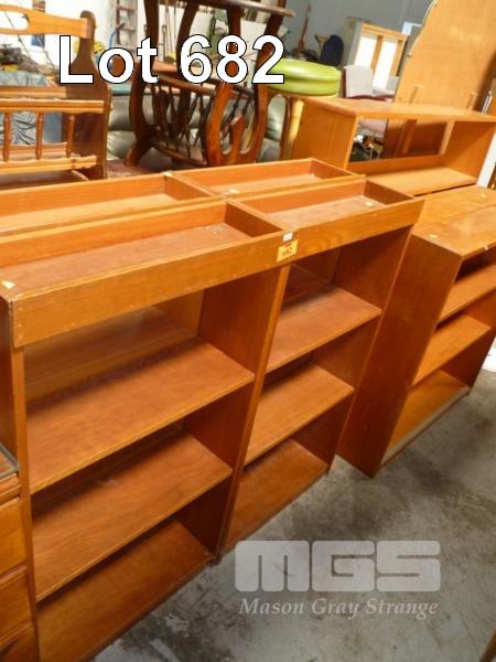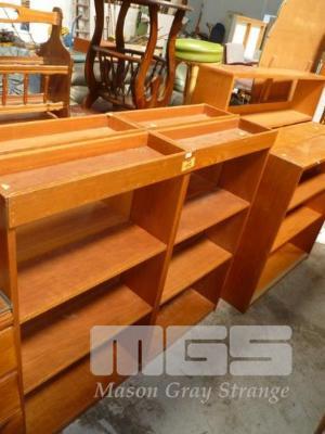 4 X BOOKCASES, 3 TIER, TIMBER VENEER