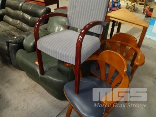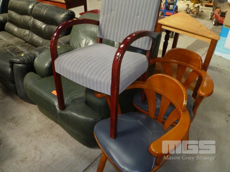 GREEN LEATHER LOUNGE CHAIR, PAIR SWIVEL CHAIRS & TIMBER ARMCHAIR