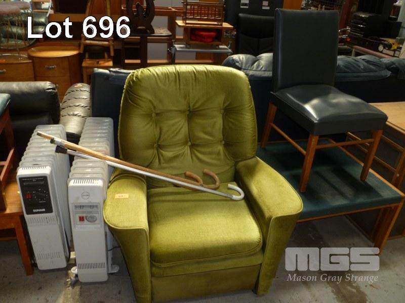 2 x OIL HEATERS, RECLINER, COFFEE TABLE, CHAIR & WALKING STICKS
