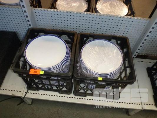 48 x DINNER PLATES, BLUE RIM, 29cm