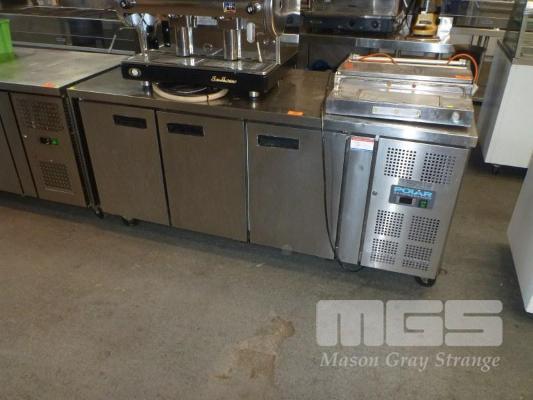 POLAR STAINLESS STEEL, 3 DOOR COUNTER CHEFS FRIDGE, 180cm, SELF CONTAINED UNIT 240V