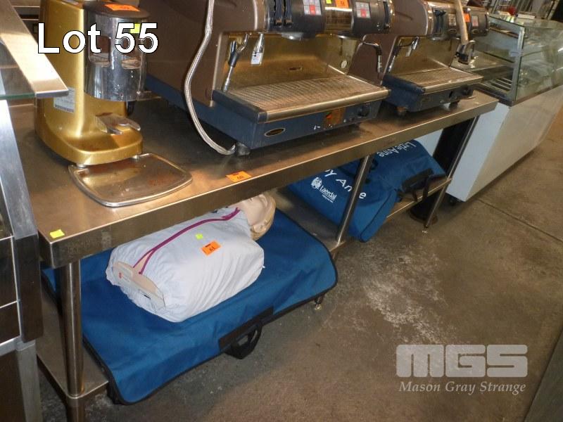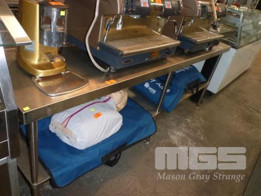 STAINLESS STEEL BENCH, 240 x 60cm, 2 TIER WITH SPLASHBACK