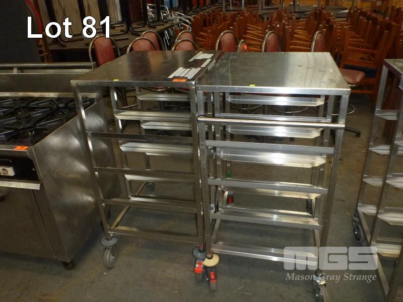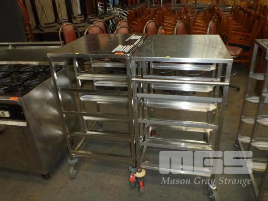 2 x STAINLESS STEEL MULTI-PURPOSE TROLLEYS, EACH 8 TIER