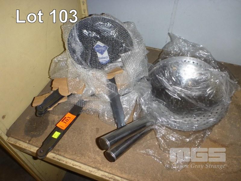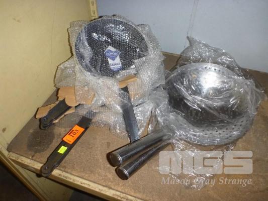 9 x FRY PANS, 30cm & 24cm & 2 x SKIMMERS