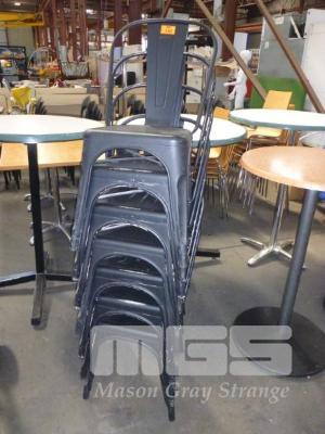 7 x METAL CAFE CHAIRS, BLACK