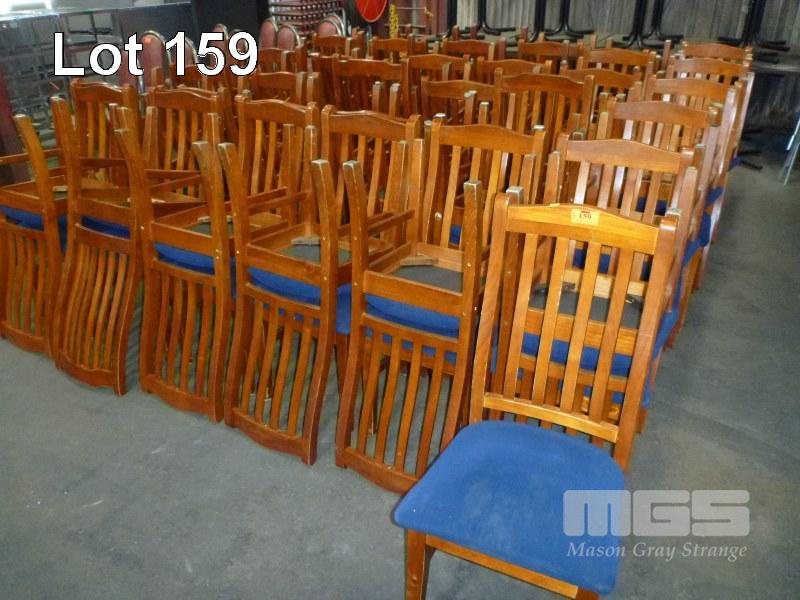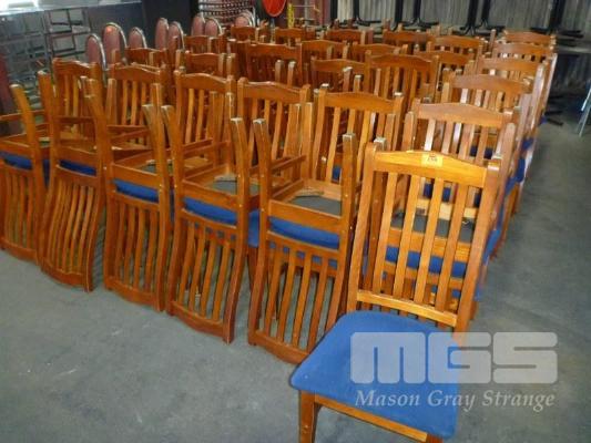 60 x RESTAURANT DINING CHAIRS, TIMBER FRAME, BLUE FABRIC, PADDED SEAT