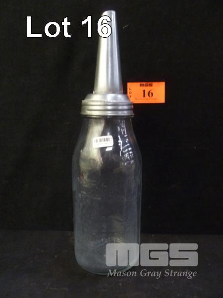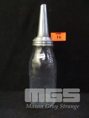 GOLDEN FLEECE EMBOSSED OIL BOTTLE, 1 IMPERIAL QUART WITH CLEAN SKIN TIN TOP (RE-MADE)