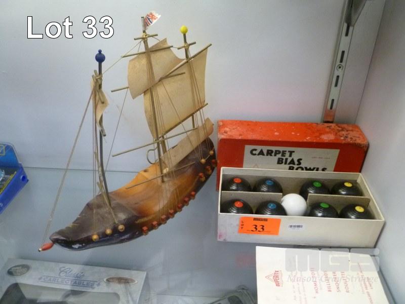 DUPERITE CARPET BOWLS & TIMBER SAILING SHIP
