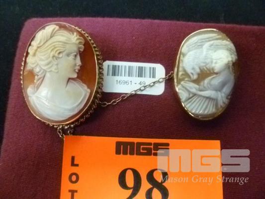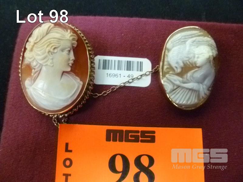 2 x SHELL CAMEOS, 1 x MARKED 9CT