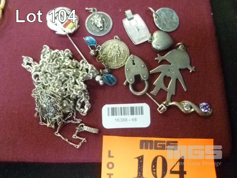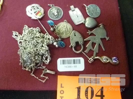 ASSORTED SILVER, CHAIN, PENDANTS