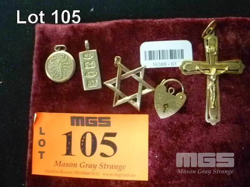 ASSORTED GOLD PENDANTS MARKED 9 CARAT