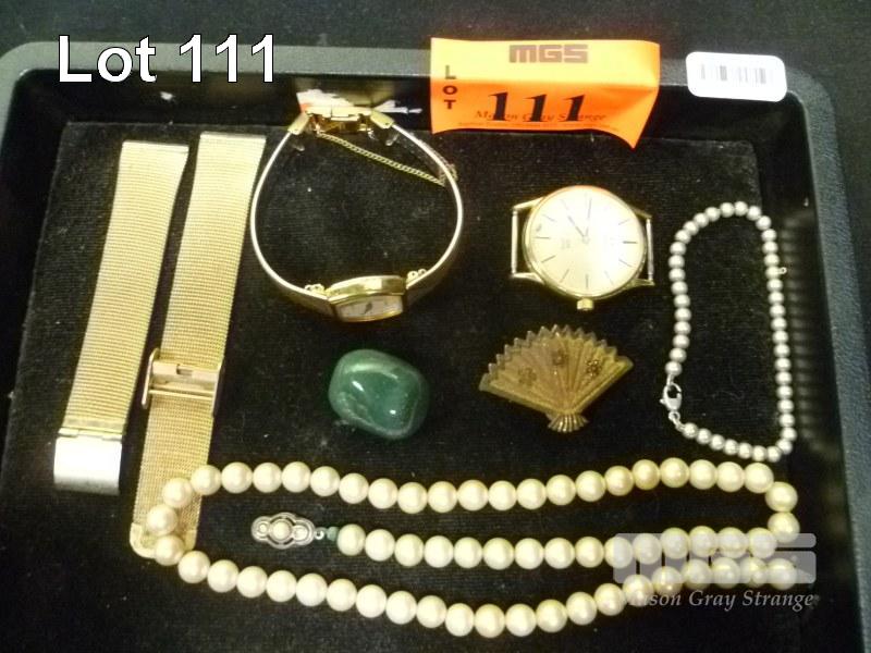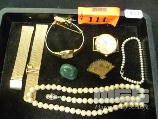 ASSORTED COSTUME JEWELLERY, WATCH MARKED OMEGA, WATCH MARKED PULSAR, STRING OF CULTURED PEARLS