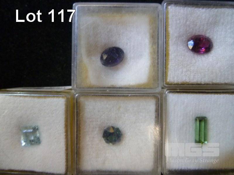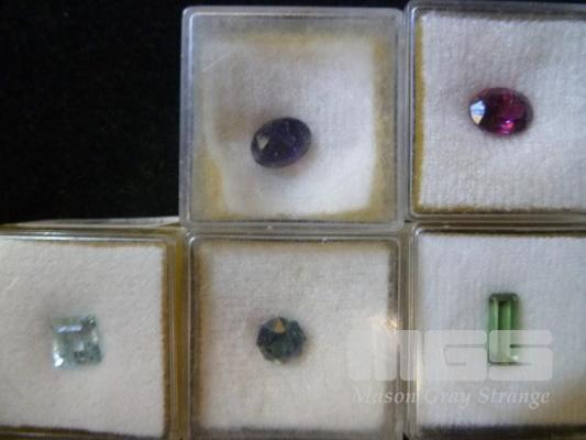ASSORTED CUT STONES, TOPAZ, GARNET, SAPPHIRE, EMERALD, 1.5, 1.75, 1.45, 1.75, 1.36 CARAT