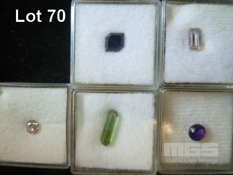 ASSORTED CUT STONES, AMETHYST, EMERALD, SPINEL, .65, 1.4, 1.2, .65, 1.15 CARAT