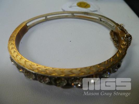 SILVER GUILD, ANTIQUE BANGLE, SET WITH 9 X RAIN STONES