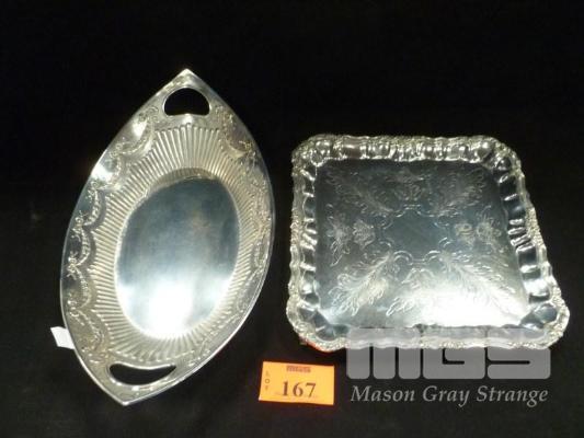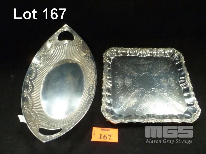 CONTINENTAL SILVER REPOUSSE WORKED DISH BY BERNARD DAMIEN, MARKED 800 & SILVER SERVING TRAY