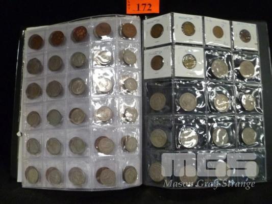 COIN ALBUM CONTAINING 164 COINS, INC; INTERNATIONAL, AUSTRALIAN, UK HALF CROWNS, TWO SHILLINGS, SHILLINGS, ETC