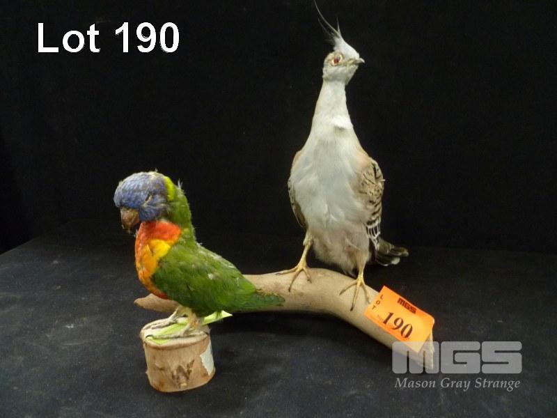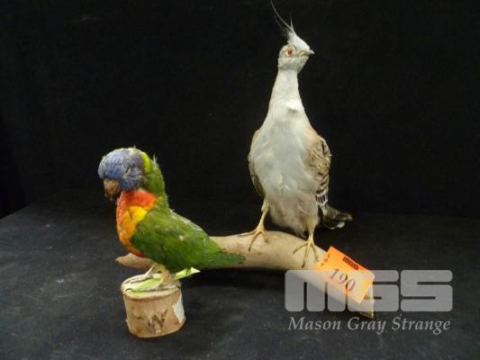 TAXIDERMY CRESTED PIGEON & RAINBOW LORIKEET
